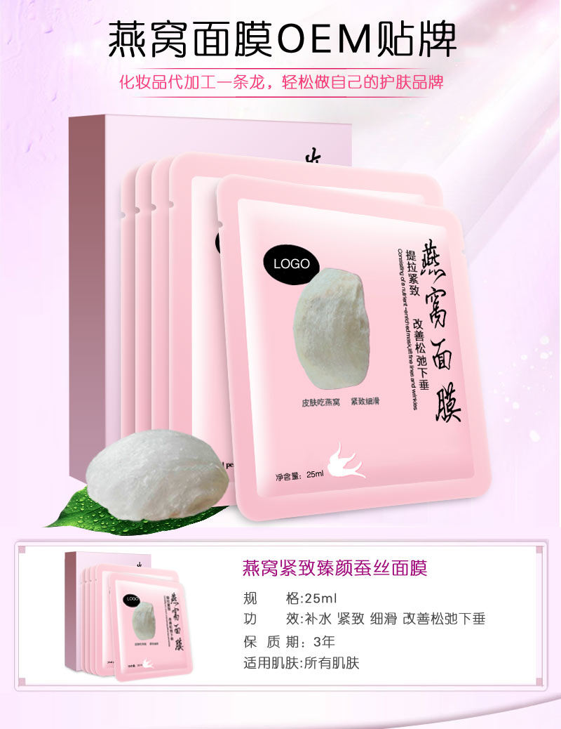 燕窝紧致臻颜面膜OEM贴牌|紧实嫩滑|成都凯茜化妆品专业代加工厂家|25ml |