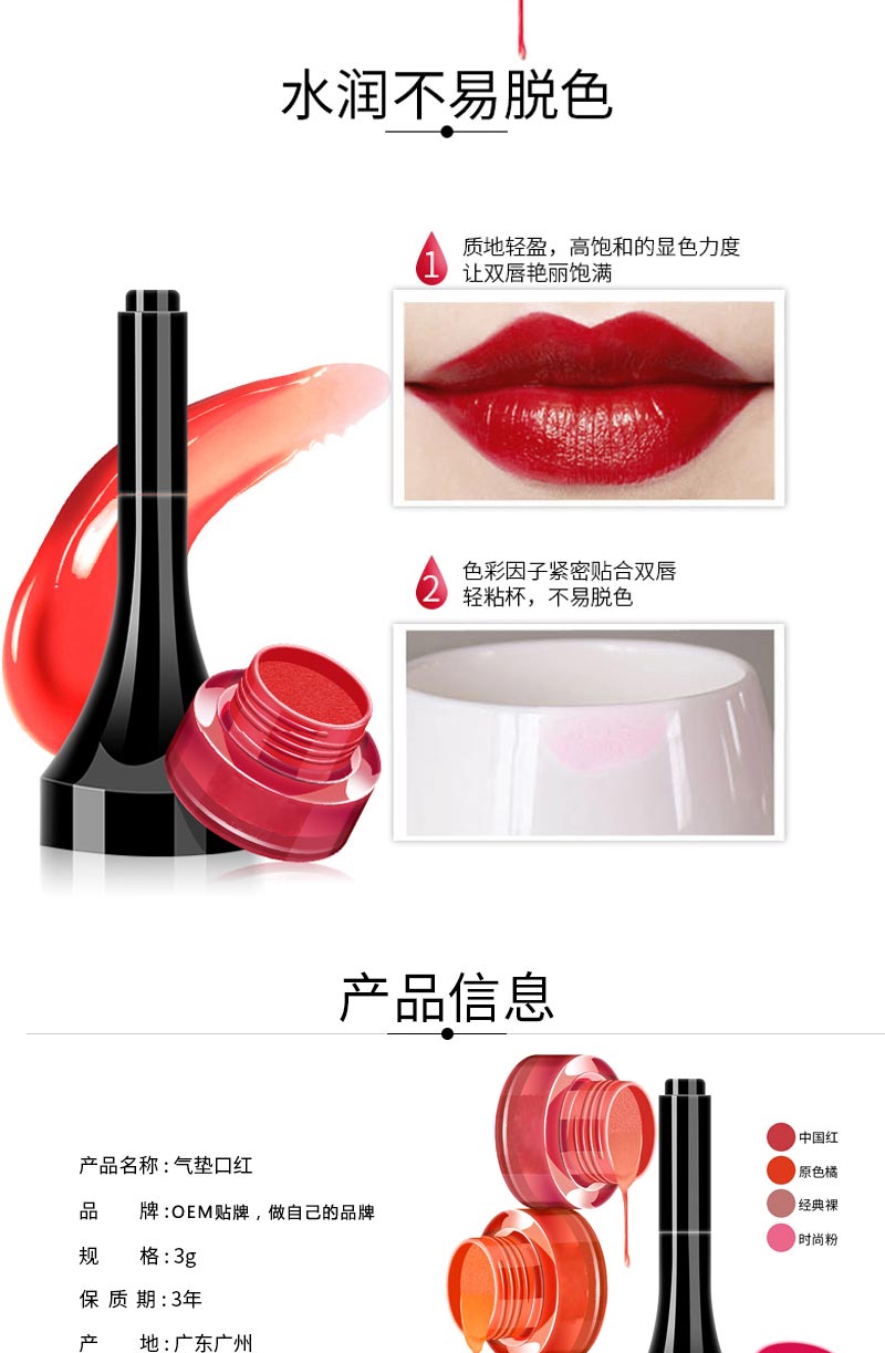 气垫唇油口红OEM贴牌|咬唇|不易脱色|成都化妆品专业代加工厂家 |