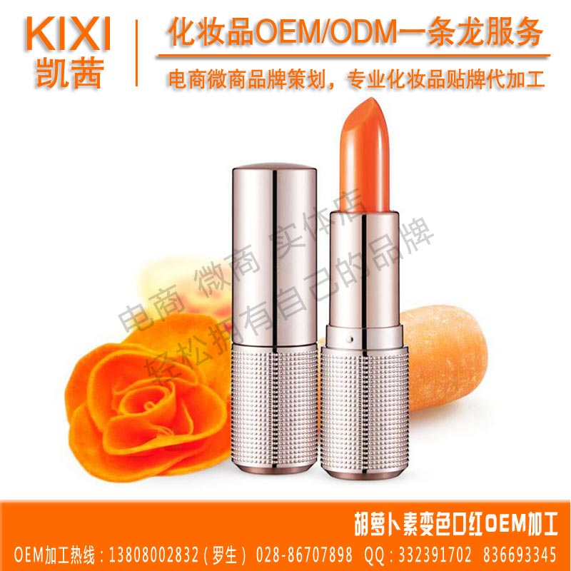 胡萝卜素变色口红OEM贴牌|不易脱色|保湿滋润|成都化妆品专业代加工厂家 |